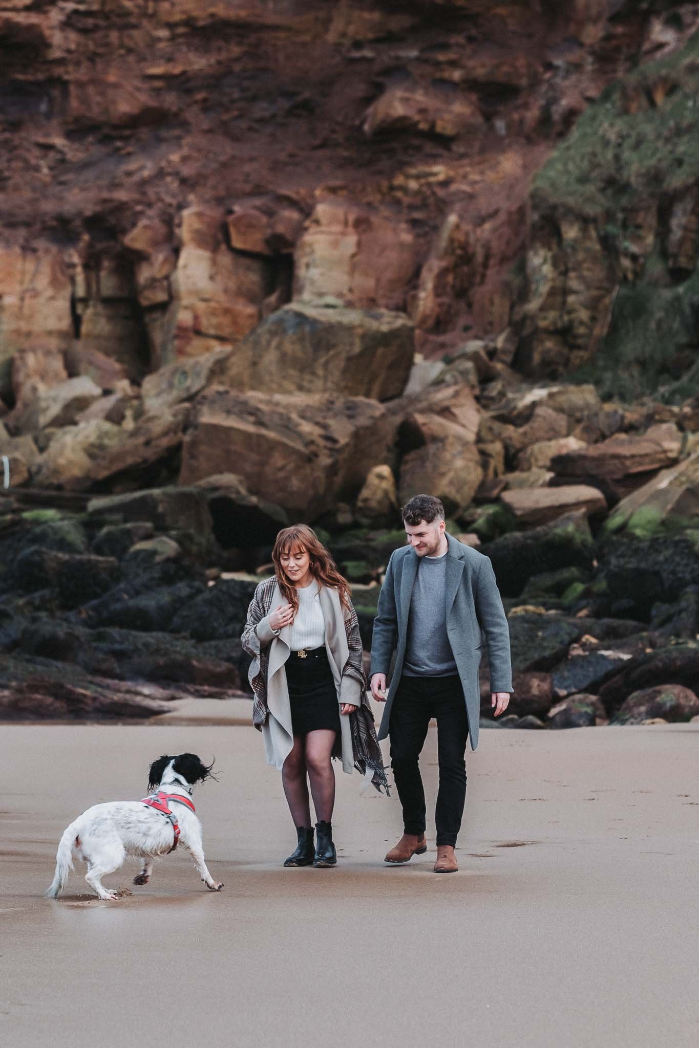 We are back in the beautiful Tynemouth for another engagement shoot. It is getting colder and colder as we get closer to Christmas, but thankfully the weather was on our side this day. Georgia and Daniel brought with them their wonderful dog Rosie. She was desperate to get onto the beach (King Edwards Bay) and have a run around.